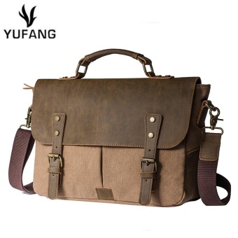 Details product untuk YUFANG Pria Vintage Tahan Lama Canvas Messenger Bag Crazy Horse Kulit Lembut Travel Bags Retro Tas Sekolah Gaya Militer Handbag (kopi)| Parent SKU | YU910FAAAN6R3HANID| Simple SKU | YU910FAAAN6R3HANID-50040959 |